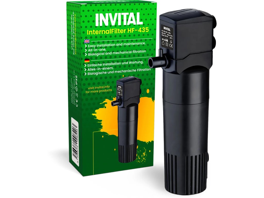 INVITAL vnitřní filtr HF-435 ✅ je ideální volbou pro menší a středníakvária, kde je potřeba kompaktní, ale zároveň účinná filtrace. Díky prostornému zásobníku na filtrační média a dvěma různým typům výtoku (tryska nebo rozstřikovací rampa) poskytuje maximální flexibilitu a přizpůsobení jakémukoliv akvarijnímu setu.