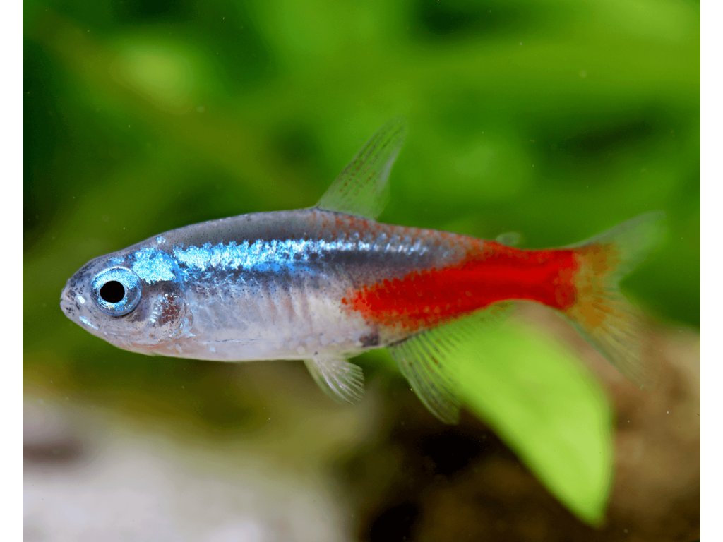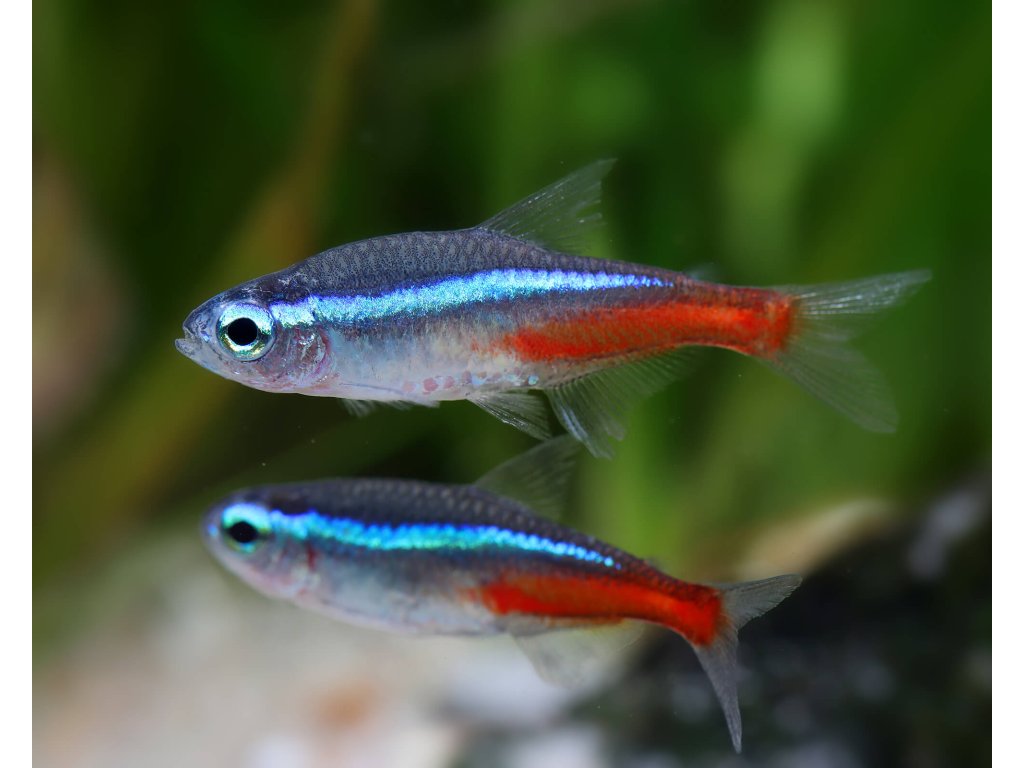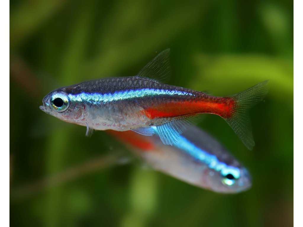 Neonka obecná - Paracheirodon innesi je čilá, společenská, nenáročná rybka. Její nejčastější pobyt je přímo pod hladinou, kde se ráda honí s proudem od filtru.